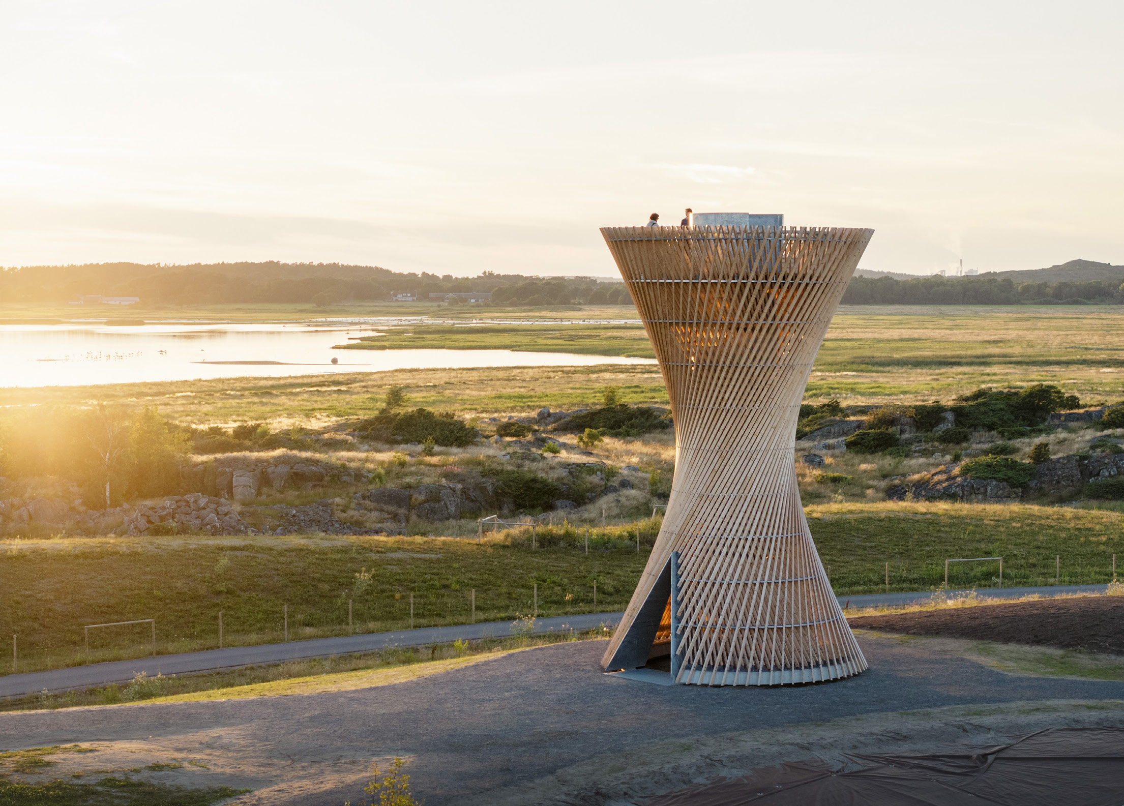 Valet för konstruktionen av utkikstornet föll på en hyperbolisk paraboloid som ger en timglasliknande silhuett. Strukturen är en hybridkonstruktion av stål och trä, där materialens egenskaper utnyttjas på bästa sätt.