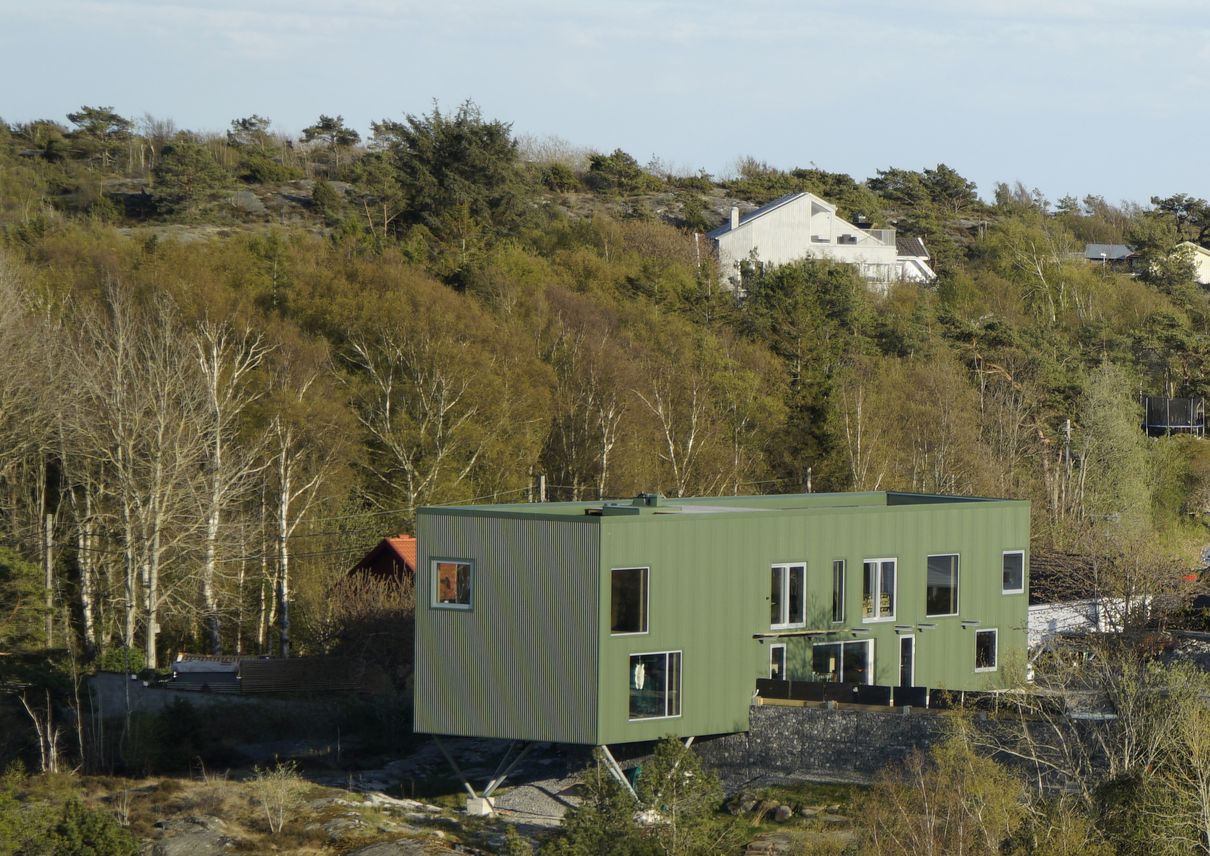 Genom att landa i endast två punkter på berget minskas ingreppen i naturen. Stål är en genomgående del av den konstruktiva utformningen och den industriella hallbyggnaden är förebild för både konstruktion och volymindelning.