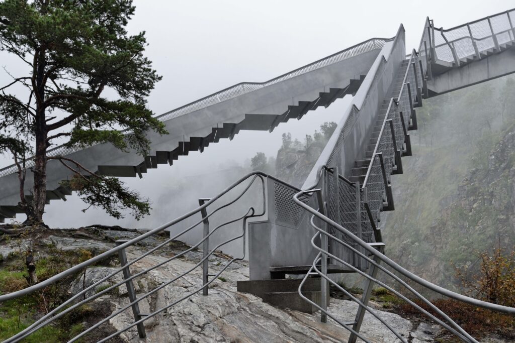 Her er juryens uttalelse: Vøringsfossen project in Norway was awarded a special Bridge Design Award due to its success in achieving something seemingly so simple, yet very hard: elegance and feeling of lightness, while crossing great spans. Steel material can be used in a very utilitarian way with very common shapes and industrial forms, that architecturally-sought genuineness may not be always possible. This bridge project used very common methods and shapes yet architecturally and environmentally made a great contribution: combined with the land really well that it became elegantly invisible. Yet a careful eye can detect the engineering and architectural success it is achieving. We award the project because it shows these possibilities of steel structural design. Only can be done with steel!!