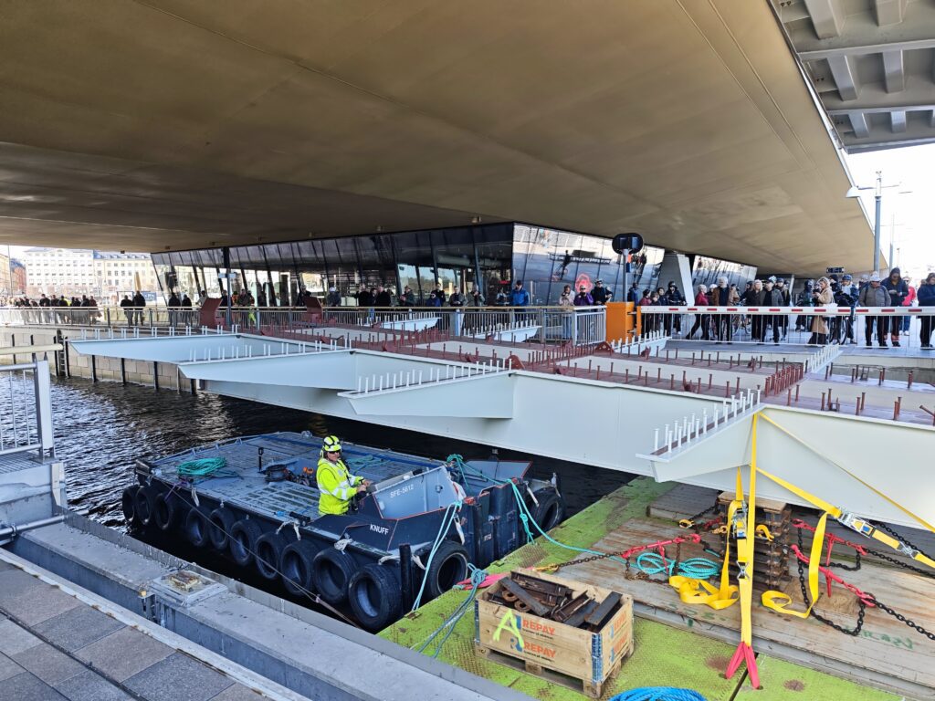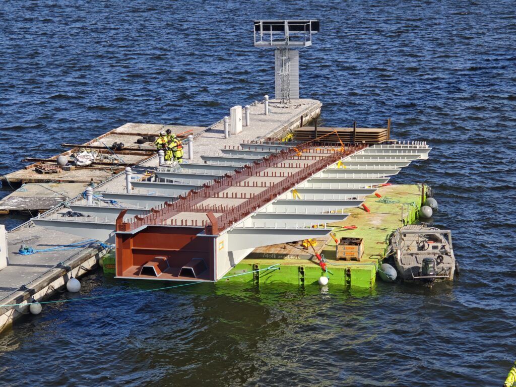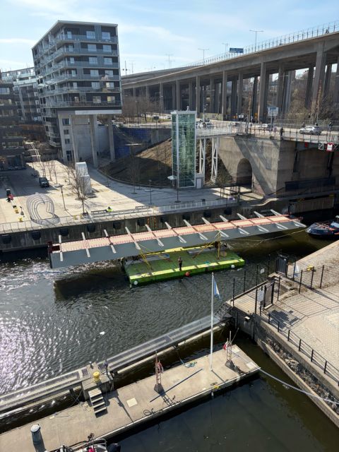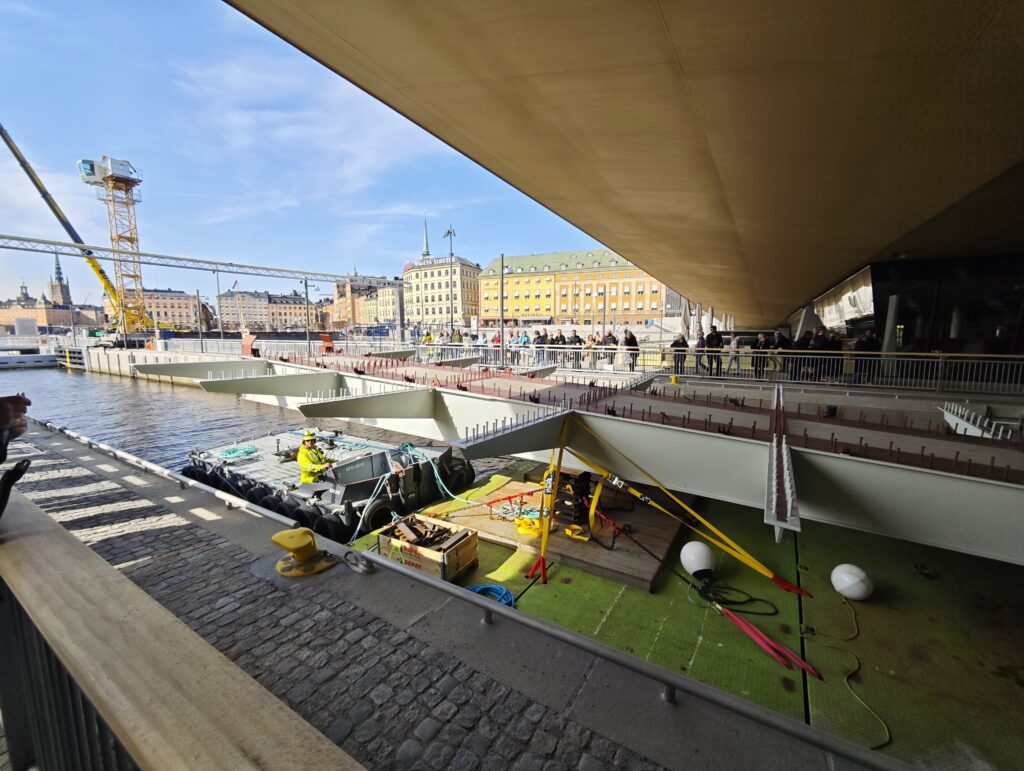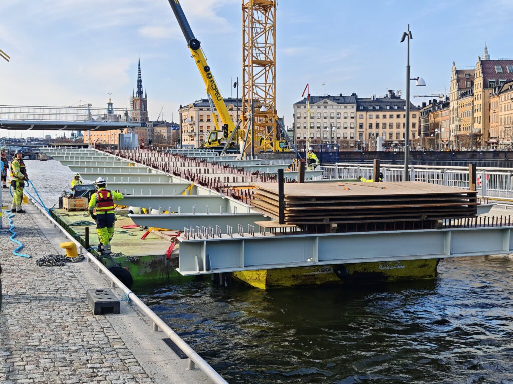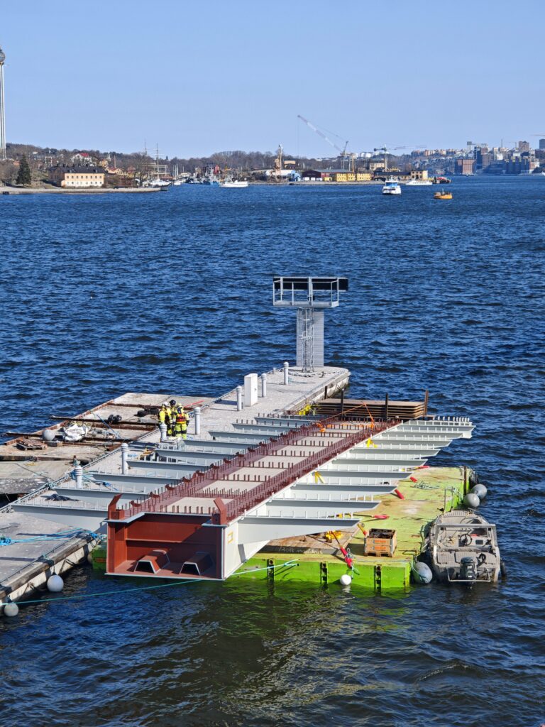 Det är ett intensivt och precisionskrävande moment där stora konstruktioner bogseras genom trånga vattenvägar mitt i Stockholm, steg för steg, med mycket små marginaler. När gång- och cykelbron mellan Slussen och Gamla stan står klar i början av 2027 beräknas omkring 18 000 cyklister använda bron dagligen