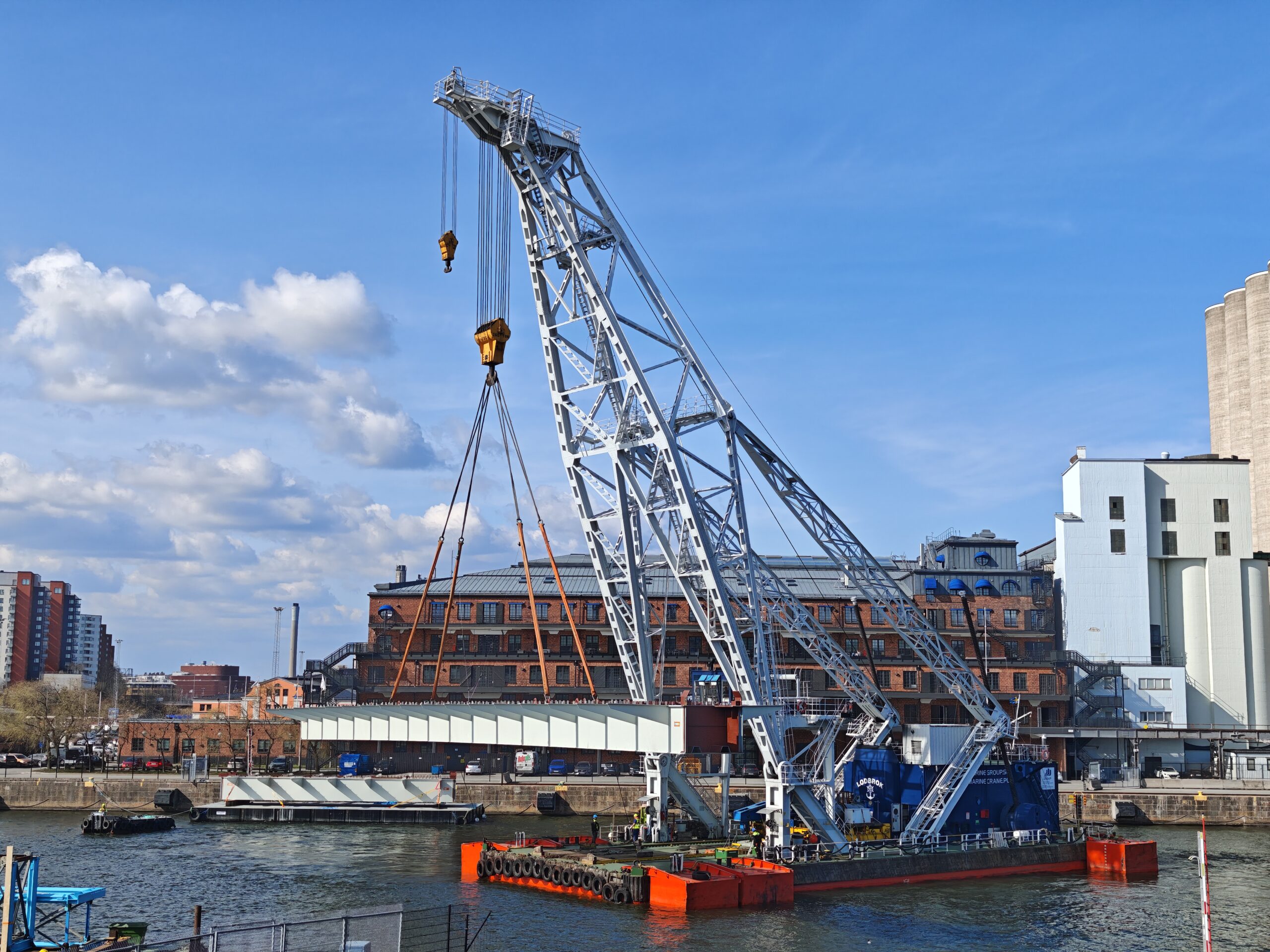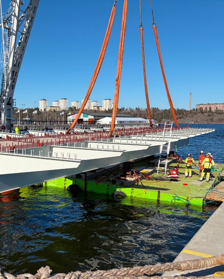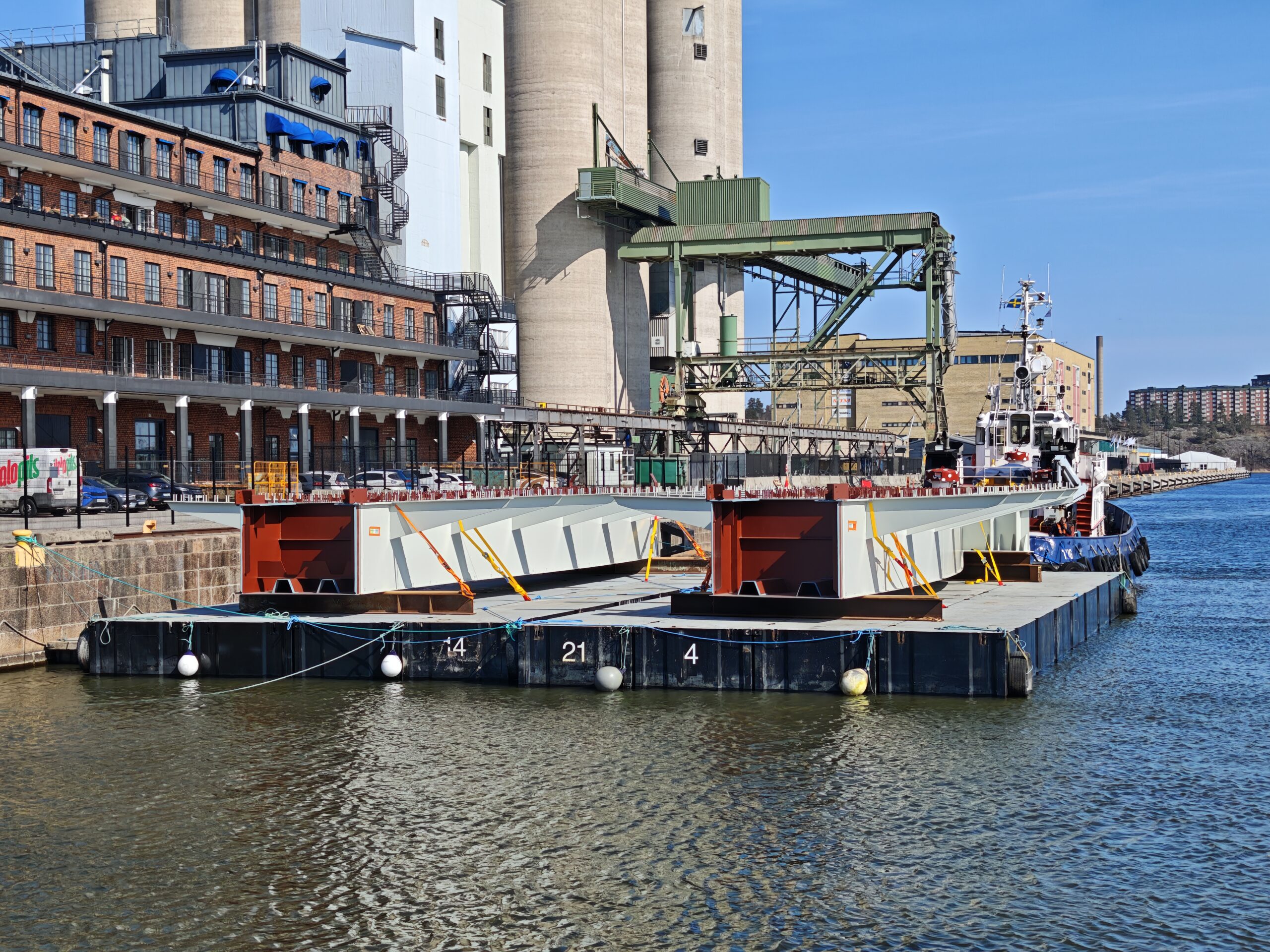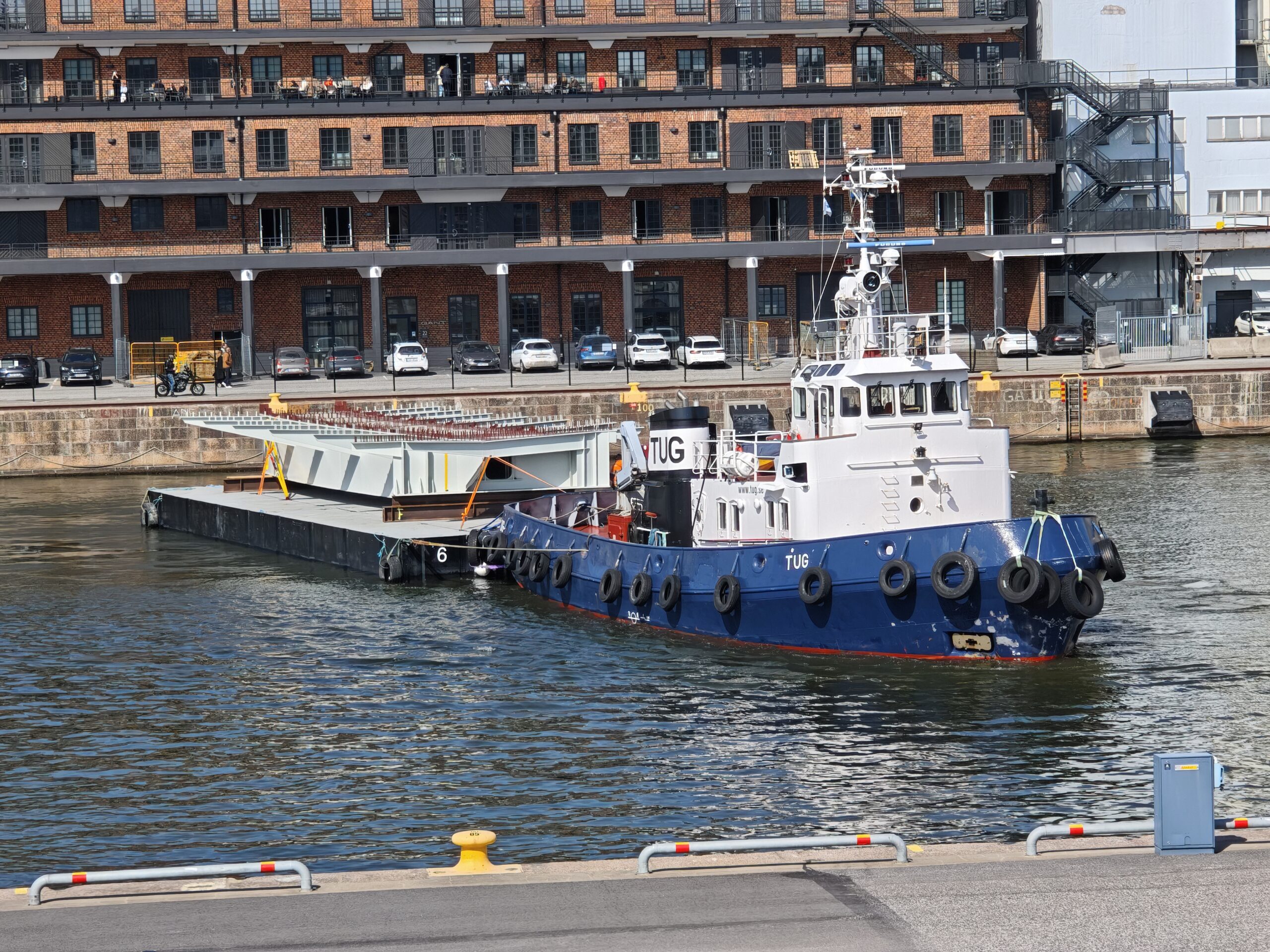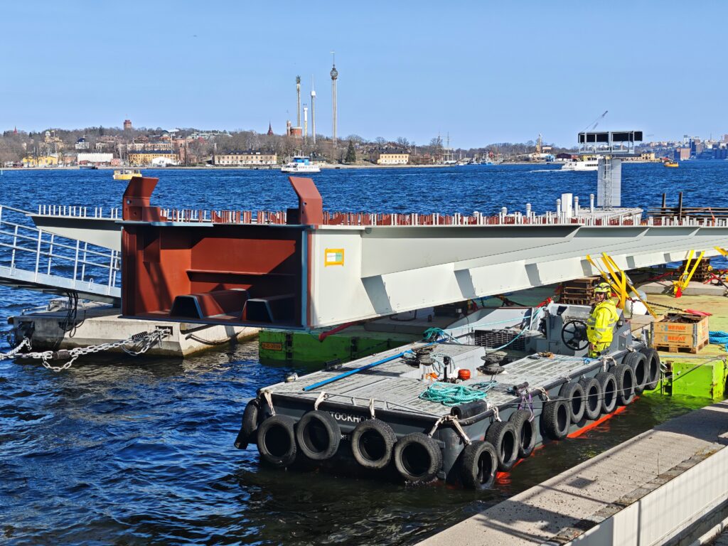 En ny gång- och cykelbro till Slussenprojektet har transporterats sjövägen från Polen. Den kom uppdelad i sex stora delar, varav den tyngsta vägde hela 152 ton. Delarna bogseras vidare till Slussen, där bron kommer att knyta samman Södermalm och Gamla stan. Leveransen visar hur Stockholms kajer möjliggör effektiva och hållbara transporter direkt till slutdestination i centrala Stockholm.